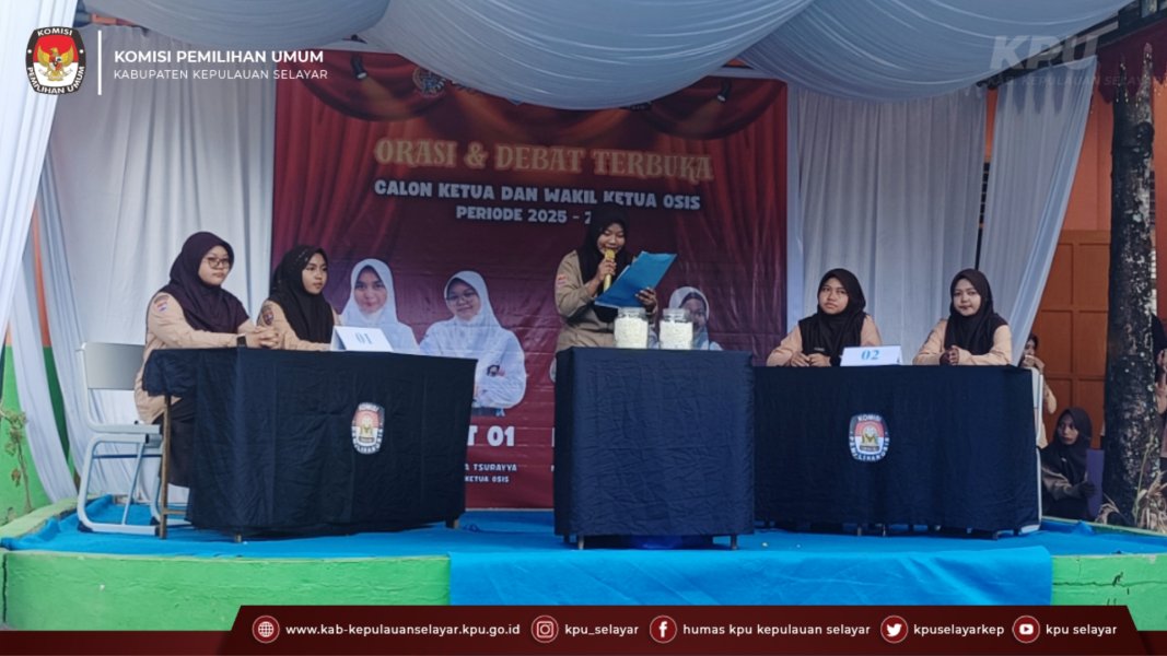 KEPULAUAN SELAYAR – Komisi Pemilihan Umum (KPU) Kabupaten Kepulauan Selayar kembali hadir mendampingi pelaksanaan kegiatan demokrasi di lingkungan sekolah. Pada hari ini, Jumat (26/9/2025), SMA Negeri 1 Selayar menyelenggarakan orasi dan debat terbuka calon Ketua dan Wakil Ketua OSIS periode 2025–2026.