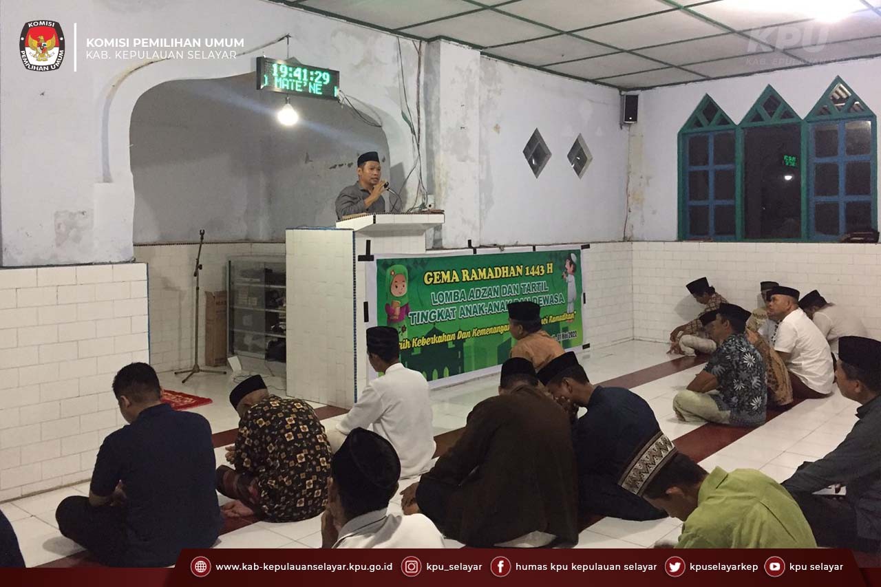 Dalam kegiatan safari ramadhan di Masjid Darul Aqsa di Dusun Sipatuo Sipatokkong Desa Onto Kecamatan Bontomatene, Ketua KPU Kabupaten Kepulauan Selayar mengatakan kegiatan safari ramadhan ini penting kami adakan untuk menyeimbangkan urusan politik dengan urusan ibadah (agama) karena KPU adalah wasit.