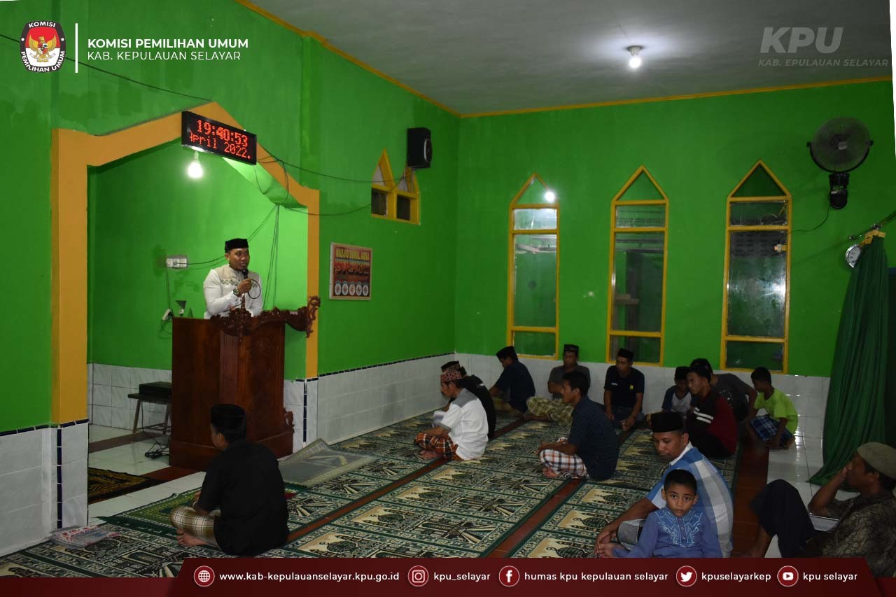 Bontomatene, kab-kepulauanselayar.kpu.go.id - Dihari ke-14 ramadhan, Komisi Pemilihan Umum (KPU) Kabupaten Kepulauan Selayar masih semangat dalam menyebarkan informasi terkait Jadwal pelaksanaan PEMILU Serentak yang akan dilaksanakan 14 februari 2024 mendatang secara massif. Pemberian informasi tersebut dilakukan melalui kegiatan safari ramadhan, selama bulan suci ramadhan tahun ini 1443 H / 2022 M.