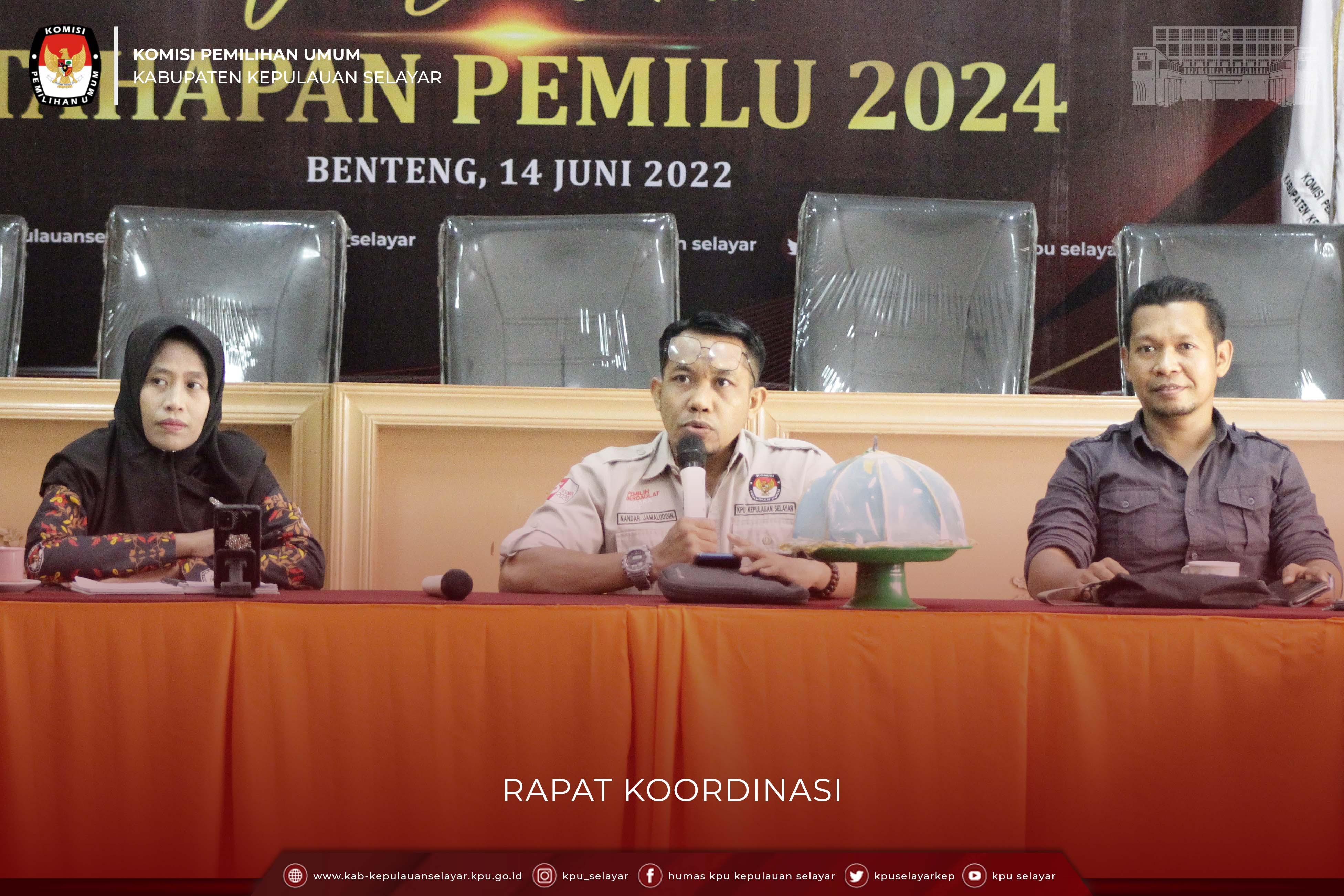 Rapat yang berlangsung di Rumah Pintar Pemilu Tanadoang KPU Kabupaten Kepulauan Selayar tersebut dibuka oleh Ketua KPU Kabupaten Kepulauan Selayar, Nandar Jamaluddin. Dalam sambutannya Ketua KPU Kabupaten Kepulauan Selayar mengatakan, kegiatan ini bertujuan untuk mensukseskan Pemilihan Umum tahun 2024 mendatang.