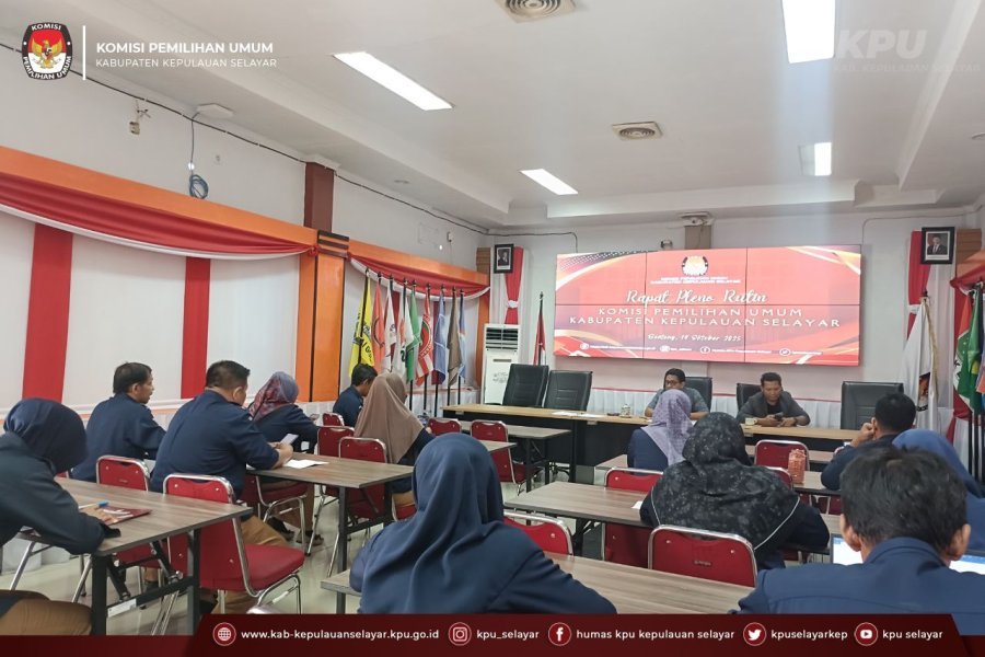 Kepulauan Selayar, Benteng – Komisi Pemilihan Umum (KPU) Kabupaten Kepulauan Selayar menggelar rapat pleno rutin pada Selasa (14/10) di Kantor KPU Kabupaten Kepulauan Selayar Jl. Jend.Ahmad Yani No. 12 Benteng, Kabupaten Kepulauan Selayar. Rapat dipimpin langsung oleh Ketua KPU, Andi Dewantara, didampingi Kepala Divisi Hukum dan Pengawasan, Mansur Sihadji, serta Sekretaris KPU, H. Ahmad Basri, dan dihadiri oleh jajaran sekretariat. Selasa (14/10/2025). Rapat pleno kali ini membahas evaluasi pelaksanaan kegiatan pekan sebelumnya serta pemantapan agenda kerja untuk pekan mendatang. Dalam arahannya, Andi Dewantara menegaskan pentingnya konsistensi dan inovasi dalam menjalankan setiap program. “Rapat pleno ini menjadi forum strategis untuk memastikan semua program berjalan sesuai rencana. Evaluasi mingguan membantu kami mengidentifikasi tantangan, sementara perencanaan yang matang memastikan program ke depan lebih efektif,” ujarnya. Fokus pada Pendidikan Pemilih dan Peningkatan Kualitas Demokrasi Salah satu topik utama yang dibahas adalah program “KPU Mengajar”, yang akan menyasar siswa SMA dan SMK di Kepulauan Selayar. Melalui program ini, KPU berupaya menanamkan kesadaran politik dan semangat berdemokrasi sejak dini di kalangan pemilih pemula. Selain itu, KPU juga tengah menyiapkan beberapa kegiatan lain, di antaranya: Podcast KPU Selayar, media komunikasi santai dan modern untuk menjangkau masyarakat luas. Coktas PDPB (Pencocokan dan Penelitian Terbatas Pemutakhiran Data Pemilih Berkelanjutan), langkah proaktif menjaga akurasi data pemilih di luar tahapan pemilu. Kajian Pemilu dan Pilkada Pasca Pemilihan, evaluasi mendalam untuk menghasilkan rekomendasi strategis dalam meningkatkan kualitas penyelenggaraan pemilu di masa mendatang. Rapat pleno ditutup dengan komitmen bersama seluruh jajaran KPU Kabupaten Kepulauan Selayar untuk terus memperkuat kualitas demokrasi dan memberikan pelayanan terbaik bagi masyarakat Bumi Tanadoang.